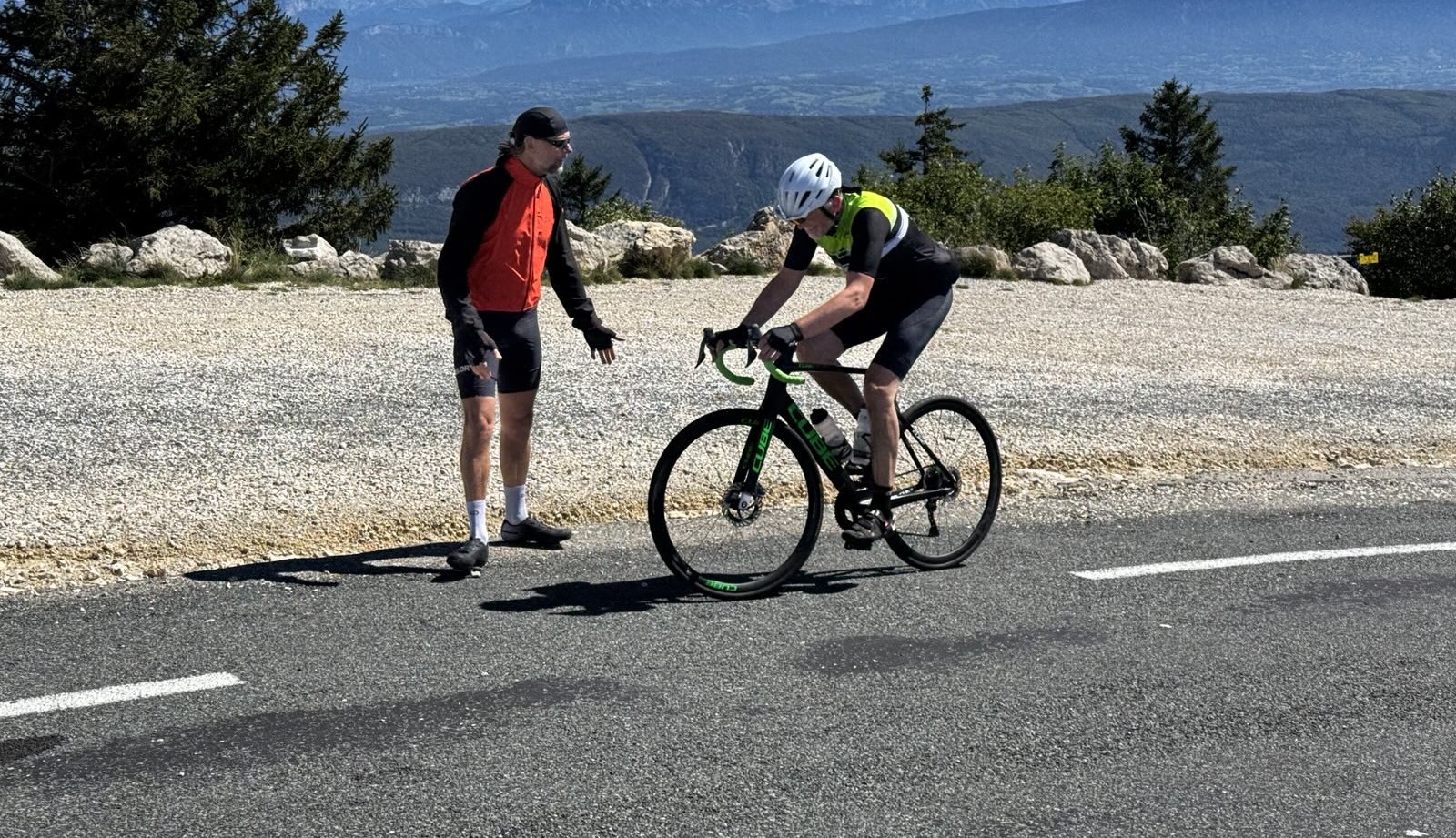 Hiervoor kom je naar de Jura: 124 kilometer en ruim 2.500 hoogtemeters (of 90 km met 1.500 hm). We steken de grens over naar Zwitserland en via Les Côtes en de Col de l’Aiguillon bereiden we ons voor op de zware Le Suchet: 9 kilometer klimmen met gemiddeld meer dan 9%. Daarna volgen de Col du Plane, een stuk van de Col du Mollendruz en als slot de Col de Landoz-Neuve. Pffft…
